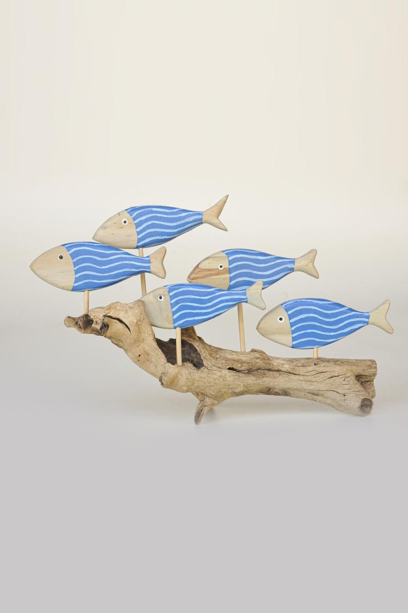 O “Adorno – Cardume em Madeira” é uma peça artesanal única, esculpida à mão em madeira. Com um conjunto harmonioso de peixes, esta peça traz a vivacidade de um cardume em movimento, evocando a beleza da vida marinha.