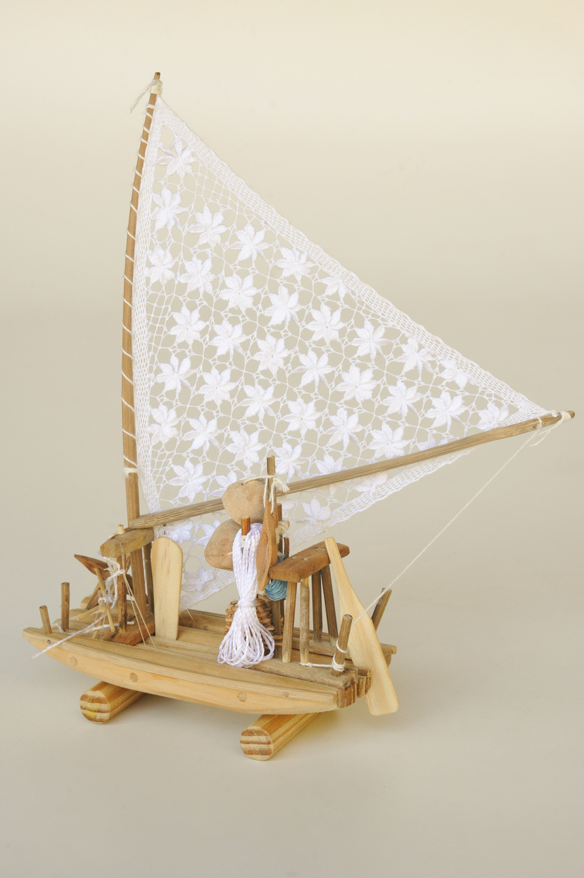 O “Adorno – Jangada com Vela em Renda” é uma peça artesanal única, esculpida à mão com detalhes em renda que compõem a vela. A peça simboliza a tradição e a vida dos pescadores, unindo a rusticidade da jangada com a delicadeza da renda, trazendo um toque de autenticidade e beleza natural à decoração.