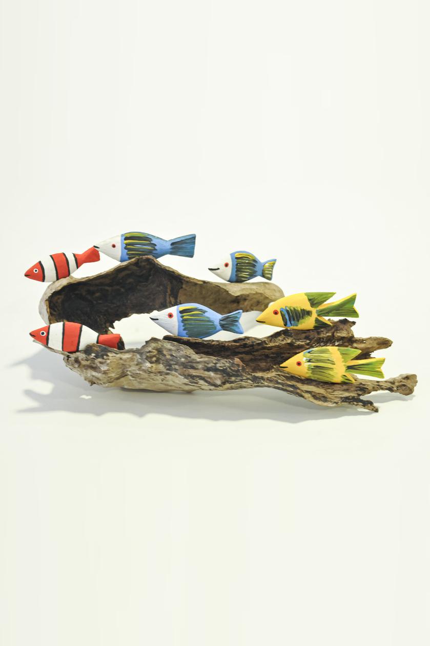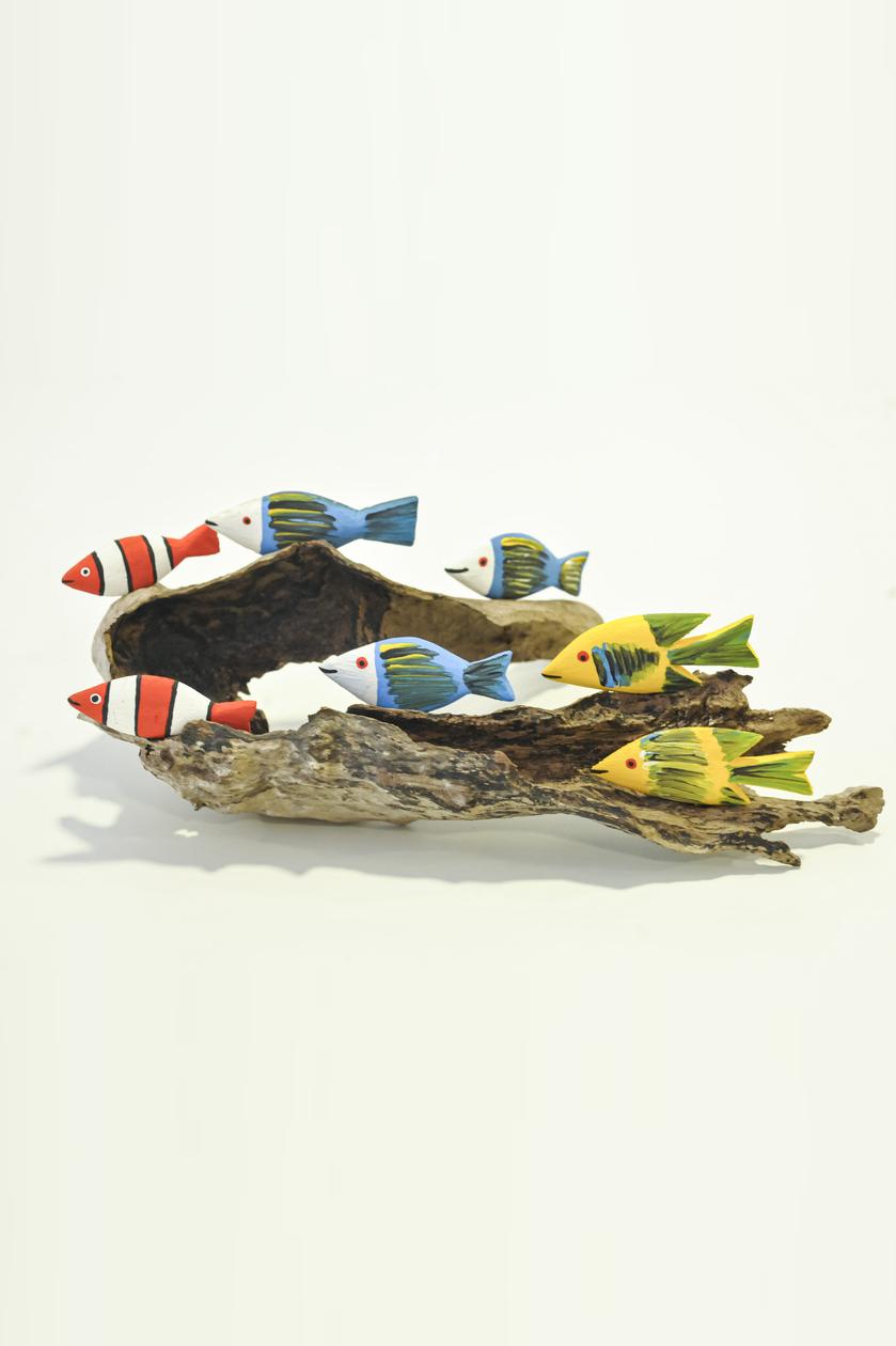 A “Escultura em Madeira – Aquário com Peixes” é uma obra de arte meticulosamente esculpida que retrata um cenário aquático encantador. Feita à mão em madeira, esta escultura apresenta detalhes intricados, criando uma representação vívida e serena de um aquário.