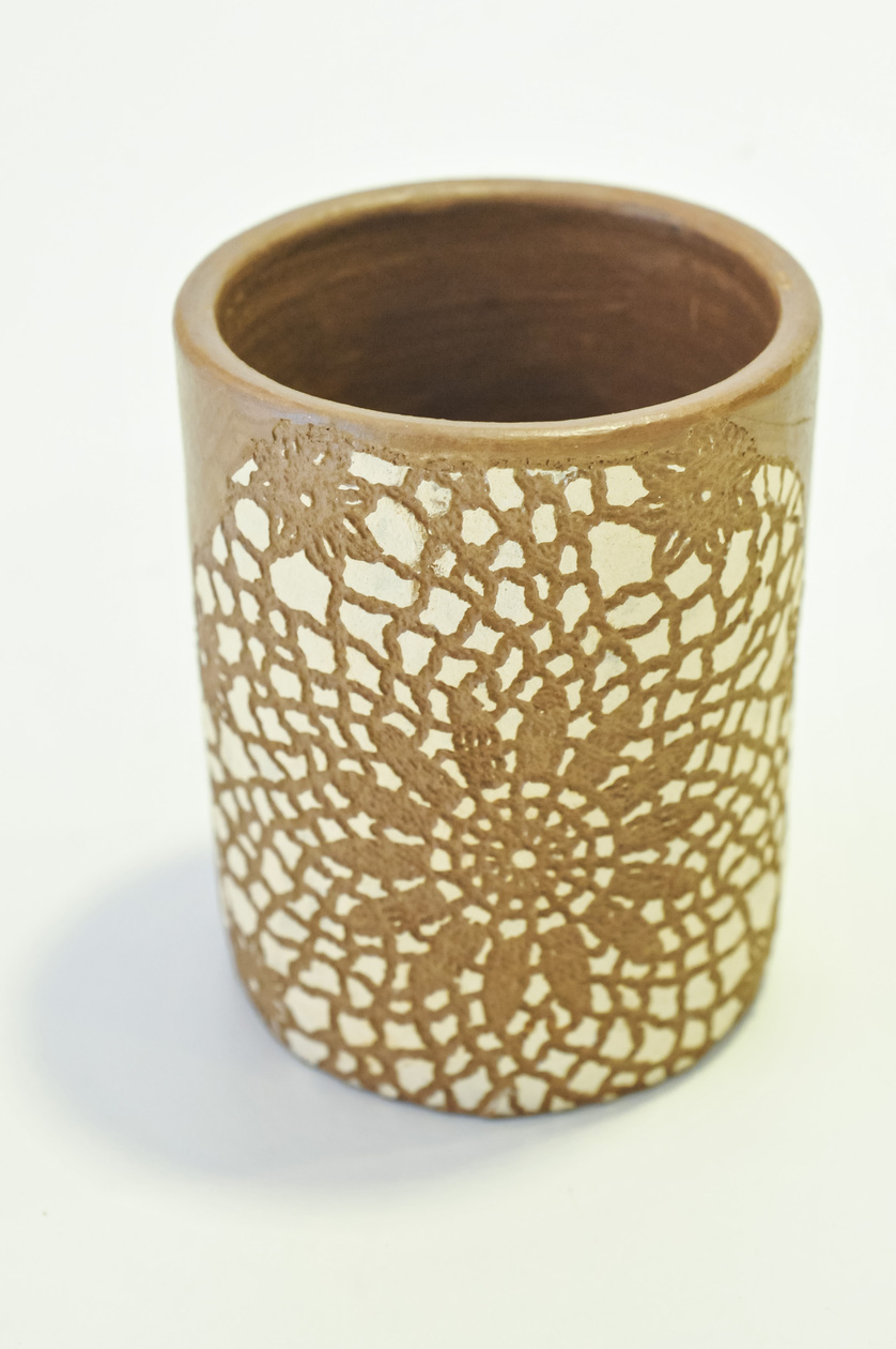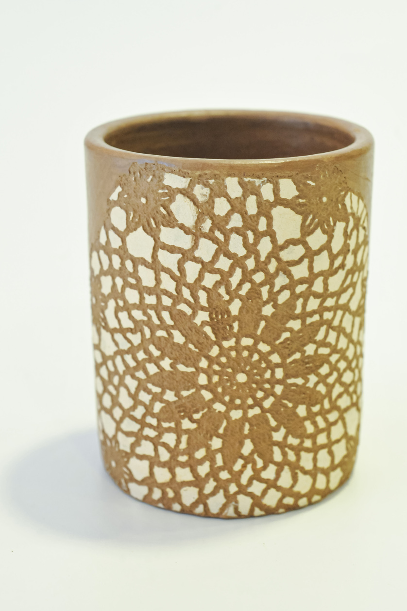 É uma peça de artesanato funcional, feita à mão com argila, destacando-se por seus detalhes entalhados que evocam um labirinto. Ideal para adicionar um toque artístico à sua mesa.